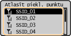 Varat meklēt savienošanai pieejamos bezvadu maršrutētājus (jeb piekļuves punktus) un izvēlēties kādu no tiem iekārtas displejā. Kā tīkla atslēgu ievadiet WEP atslēgu vai PSK. Pirms bezvadu maršrutētāja izvēles pārbaudiet un pierakstiet vajadzīgo iestatīšanas informāciju, tostarp SSID un tīkla atslēgu (