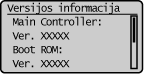 Programinės aparatinės įrangos versiją galima patikrinti naudojant aparato valdymo pultą. Kai bus baigta programinės aparatinės įrangos naujinimo operacija įsitikinkite, kad naujinimas buvo atliktas tinkamai. Programinės aparatinės įrangos versijos tikrinimas