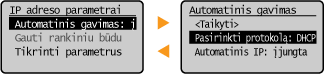 Galite keisti įvairius su ekranu susijusius parametrus, pavyzdžiui, slinkimo greitį arba ekrano kalbą: <Rodymo parametrai>