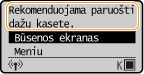 Kai dažomųjų miltelių kasetėje lieka mažai dažų, aparate rodomas pranešimas. Atkreipkite dėmesį, kad nesiimant jokių veiksmų ir spausdinant toliau, spausdinimo kokybė prastės. Likusį dažomųjų miltelių kiekį kasetėje galite patikrinti ekrane (