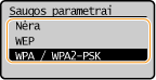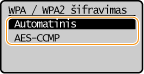 Nustatoma, kad aparatas automatiškai pasirinktų AES-CCMP arba TKIP, kad atitiktų belaidžio maršrutizatoriaus parametrą.