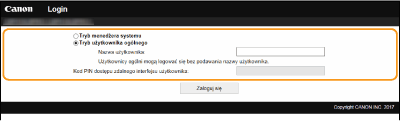 Jeżeli opcja [Kod PIN dostępu zdalnego interfejsu użytkownika] została skonfigurowana, wprowadź kod PIN.