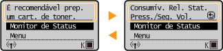 As mensagens aparecem no ecrã em várias situações, como, por exemplo, quando o papel acaba ou quando o cartucho de toner chega ao fim da sua vida útil. Contramedidas para cada mensagem