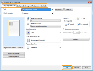 Especifique as definições de impressão conforme necessário e clique em [OK].
