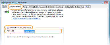 Clique no separador [Partilha], selecione [Partilhar esta impressora] e introduza o nome de partilha da máquina.