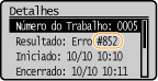 Se ocorrer um erro, como a impressão não ser bem-sucedida, o código de erro correspondente é apresentado no ecrã de registos de trabalhos sob a forma de um número de três dígitos. Verifique a secção que se segue para ver causas e soluções relativas a cada código de erro. Para obter mais informações sobre o ecrã de registos de trabalhos, consulte