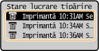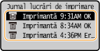 Selectaţi documentul pentru care doriţi să verificaţi jurnalul.Se afişează <OK> la imprimarea unui document şi <Eroare> la neimprimarea unui document deoarece a fost anulat sau a apărut o eroare.