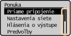 Posúvač je zobrazený na pravej strane obrazovky, ak sa nezmestia na obrazovku všetky informácie. Ak sa zobrazí posúvač, použitím tlačidiel a sa posúvajte po obrazovke. Text a farby pozadia položky sú po výbere invertované.