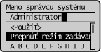 Vyberte položku <Prepnúť režim zadávania> a stlačením tlačidla zobrazte obrazovku na výber typu zadávaného textu. Vyberte typ textu a stlačte tlačidlo .