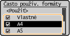 Môžete zaistiť, že sa na obrazovke výberu nastavenia veľkosti papiera budú zobrazovať len najčastejšie používané veľkosti papiera.