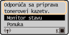 Zobrazená správa závisí od množstva zvyšného tonera v kazetách s tonerom. V závislosti od zobrazenej správy pripravte novú kazetu s tonerom (