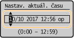Pred nastavením aktuálneho dátumu a času nastavte položku <Časové pásmo>. Ak sa zmení nastavenie <Časové pásmo>, podľa toho sa zmení aj aktuálny dátum a čas.