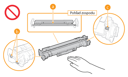 ![]() Nedotýkajte sa časti na podávanie tonera (