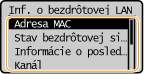 Vyberte položku <Informácie o bezdrôtovej sieti LAN>.