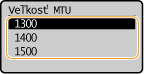 Vo väčšine sietí Ethernet je maximálna veľkosť paketu, ktorý sa dá odoslať, 1500 bajtov. Paket označuje sekvenciu dát, do ktorých sa pred odoslaním rozdelia originálne dáta. Maximálna prenosová jednotka (MTU) sa v každej sieti môže meniť. Podľa potreby zmeňte nastavenia stroja. Viac informácií získate od správcu siete.