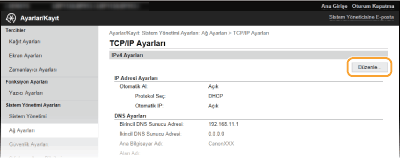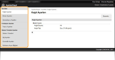 Uzak Kullanıcı Arabirimi'ni kullanarak çeşitli makine ayarlarını değiştirebilirsiniz. Ayarların çoğu makinede de ayarlanabilir, ancak bazı ayarlar yalnızca Uzak Kullanıcı Arabirimi kullanılarak ayarlanabilir. Bu bölümde, Uzak Kullanıcı Arabirimi'ni kullanarak makinenin ayarlarını değiştirmenin temel akışı açıklanmaktadır.