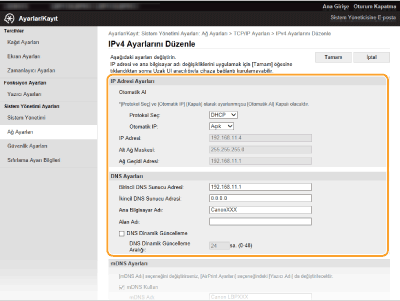 Bazı ayarları yalnızca, Sistem Yöneticisi Modu'nda oturum açtığınızda değiştirebilirsiniz.