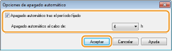 Configure las opciones de apagado automático y haga clic en [Aceptar].
