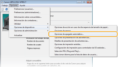 Marque la casilla de verificación para activar el apagado automático tras el tiempo especificado con [Apagado automático al cabo de].
