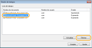 Seleccione el documento que desea cancelar y haga clic en [Eliminar].