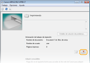 Cancelación desde una aplicaciónEn algunas aplicaciones, aparecerá una pantalla como la que se muestra a continuación. Puede cancelar la impresión haciendo clic en [Cancelar].