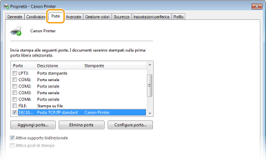 Nella scheda [Porte], verificare che sia selezionata la casella di controllo [Attiva supporto bidirezionale].
