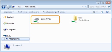 Vengono visualizzate le stampanti condivise.