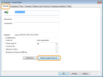 Fare clic su [Stampa pagina di prova] nella scheda [Generale].