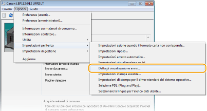 Selezionare [Opzioni]  [Impostazioni periferica]  [Dettagli visualizzazione avvisi].
