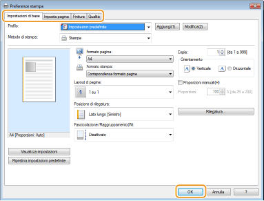 Specificare le impostazioni di stampa necessarie e fare clic su [OK].