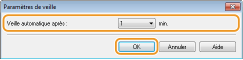 Spécifiez la durée du délai précédant le passage en mode veille. Vous pouvez sélectionner un délai allant de 1 à 30 minutes.