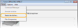 Annulation à partir d'une applicationDans certaines applications, un écran similaire à celui qui est représenté ci-dessous apparaît. Vous pouvez annuler l'impression en cliquant sur [Annuler].