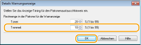 Wählen Sie [Optionen]  [Geräteeinstellungen]  [Details Warnungsanzeige].