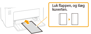 I dette afsnit beskrives, hvordan du ilægger kuverter i den ønskede retning, samt de fremgangsmåder, du skal følge, før du ilægger kuverter. Under Ilægning af papir i skuffen findes en beskrivelse af den generelle fremgangsmåde for ilægning af kuverter i skuffen.