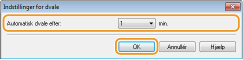 Angiv længden af den tidsperiode, hvorefter maskinen skal gå i dvaletilstand. Du kan vælge fra 1 til 30 minutter.