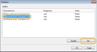 For at annullere et udskriftsjob, der aktuelt udskrives|