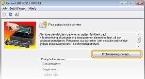Udskrivning fra en computer Træk ikke det fastklemte papiret ud med magtHvis du trækker det ud med magt, kan du ødelægge maskinen. Hvis du ikke kan fjerne papiret, skal du kontakte din lokale autoriserede Canon-forhandler eller Canon HelpDesk. Når et problem ikke kan løses