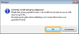 Er wordt tijdens het reinigen toner verbruikt uit de tonercartridge en de drumcartridge. Controleer daarom vooraf of er voldoende toner zit in de tonercartridge en de drumcartridge. De resterende hoeveelheid verbruiksartikelen controleren