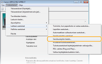 Valitse [Lisäasetukset]  [Laitteen asetukset]  [Varoitusnäytön tiedot].