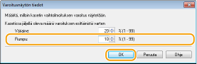 Määrittele osion [Rumpu] kohdassa [Kasetissa jäljellä oleva määrä varoituksen esittämistä varten], rumpukasetissa jäljellä oleva määrä viestin näyttämiseksi, valitse sitten [OK].