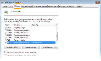 На вкладке [Порты] убедитесь, что установлен флажок [Разрешить двусторонний обмен данными].