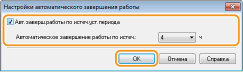 Установите этот флажок, чтобы разрешить автоматическое выключение по истечении промежутка времени, указанного в поле [Автоматическое завершение работы по истеч.].