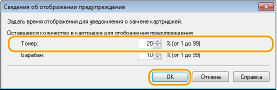 В пункте [Тонер] пункта [Оставшееся количество в картридже для отображения предупреждения] укажите оставшееся количество тонера в картридже с тонером для отображения сообщения, затем щелкните [OK].