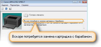 Можно отключить отображение сообщения [Вскоре потребуется замена картриджа с барабаном.], выполнив следующие действия. Выберите меню [Параметры] окна состояния принтера  [Настройки устройства]  Снимите флажок [Отображать уведомление о замене картриджей] в диалоговом окне [Настройки отображения предупреждения].