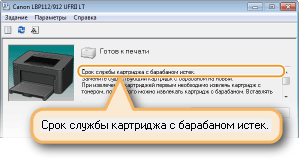 Если используется картридж с барабаном не Canon или оставшееся количество тонера в картридже с барабаном не может быть правильно определено, возможно, что сообщение не будет отображаться.