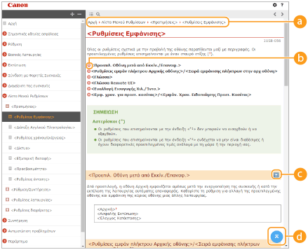 Διάταξη οθόνης του εγχειριδίου Οδηγός Χρήστη