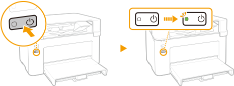 Iedegas strāvas padeves indikatora gaismiņa, un iekārta ir gatava drukāšanai.