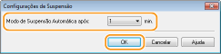 A função de modo Sleep permite diminuir a energia consumida pela máquina através da paragem temporária de algumas operações internas. Pode configurar a máquina para entrar no modo Sleep automaticamente quando permanecer inativa durante um determinado período de tempo. A predefinição de fábrica relativa ao período de tempo decorrido até a máquina entrar no modo Sleep é de 1 minuto. É aconselhável utilizar a predefinição de fábrica para poupar o máximo de energia possível. Se pretender alterar o período de tempo decorrido até a máquina entrar no modo Sleep, siga o procedimento abaixo na Janela de Estado da Impressora.
