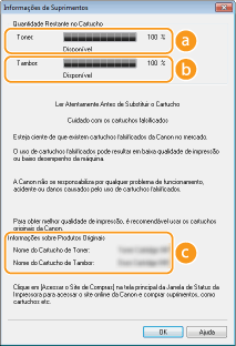 A quantidade restante no cartucho de toner ou no cartucho de tambor que é apresentada só pode ser utilizada como orientação e pode diferir da quantidade real.