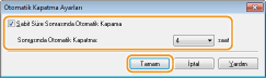 Otomatik kapatma ayarlarını yapın ve [Tamam] öğesine tıklayın.